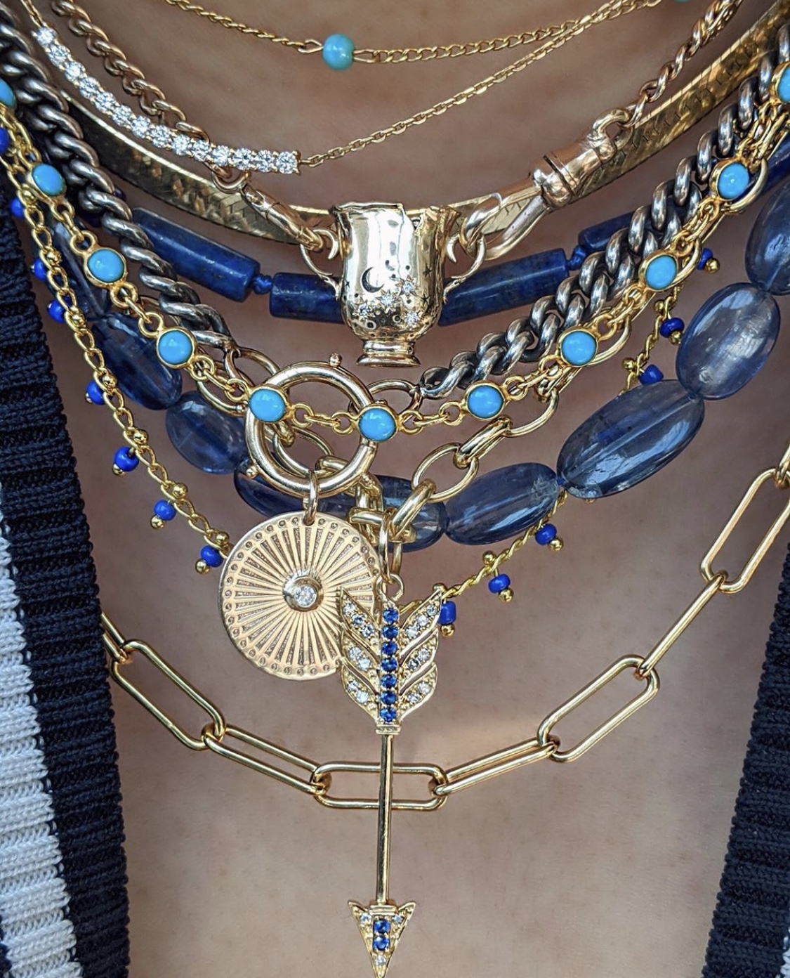 Today’s Jewelry Collection Story comes from Katmojo Jewelry — one of my newest favorites to follow on Instagram. Her necklace stacks have everyone swooning and wanting to know more about the person behind these finely curated wonders, as each photo she posts is like a Eye-Spy game. Often color-coded and mixing high-end with lower price point pieces, Kat always had a fascination and appreciation for jewelry. I am so glad so has taken the time to open up her jewelry box with us and tell us about her story. Hope you enjoy!