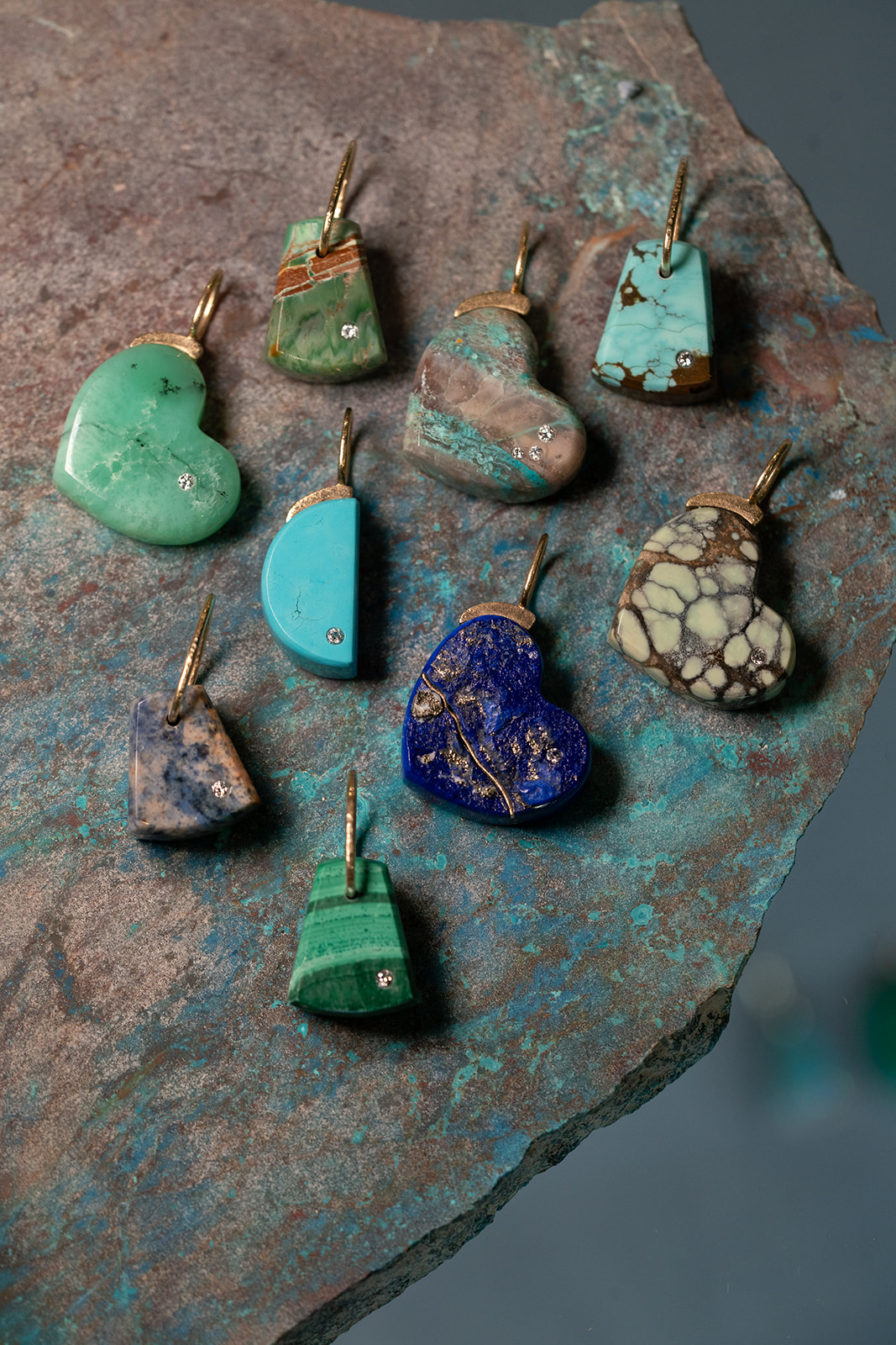 If there’s anything in this world that makes my heart sing, it is when a designer combines her unique love for gemstones with her designs. Jewelry that puts an emphasis on the gemstone is one of my favorite kinds. Karin Luvaas has a deep passion for calling herself a rockhound through and through – she is a GIA Graduate Gemologist and she loves stones with detailed inclusions, color changes, and mineral deposits. I also love how Karin carves gemstones into wearable treasures, from hearts, lightning bolts, geometric shapes and everything in between. She also is inspired by the Japanese artform of Kintsugi, which involves taking something broken and piecing it together with gold, “golden joinery.” Karin creates pieces of Kintsugi with opaque natural gemstones.