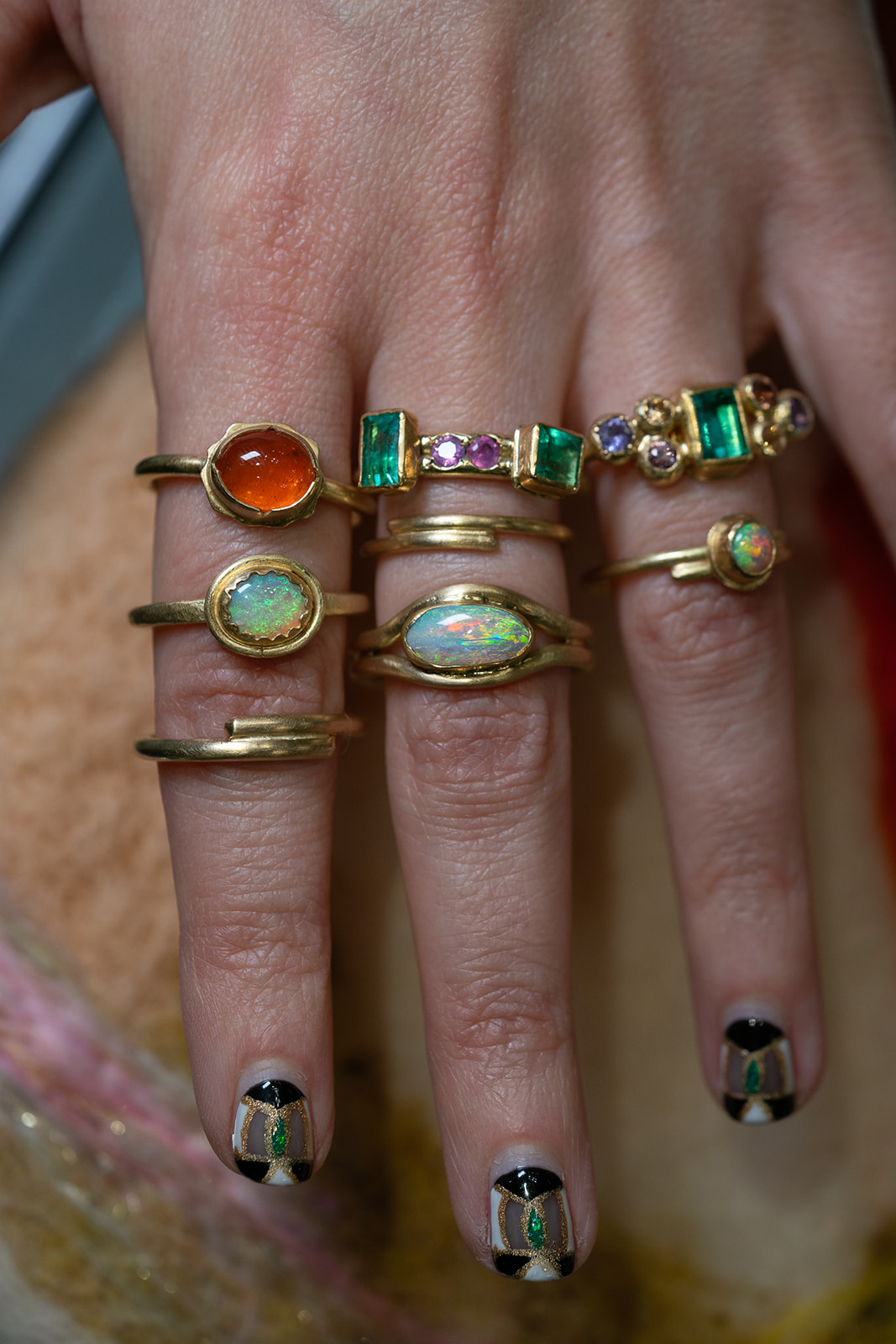 Favorite gemstone: Dendritic agates are totally inspiring to me with their natural formations, and opals for their sparkling magic, but I have also fallen love with faceted gemstones, emeralds and sapphires currently having my attention!