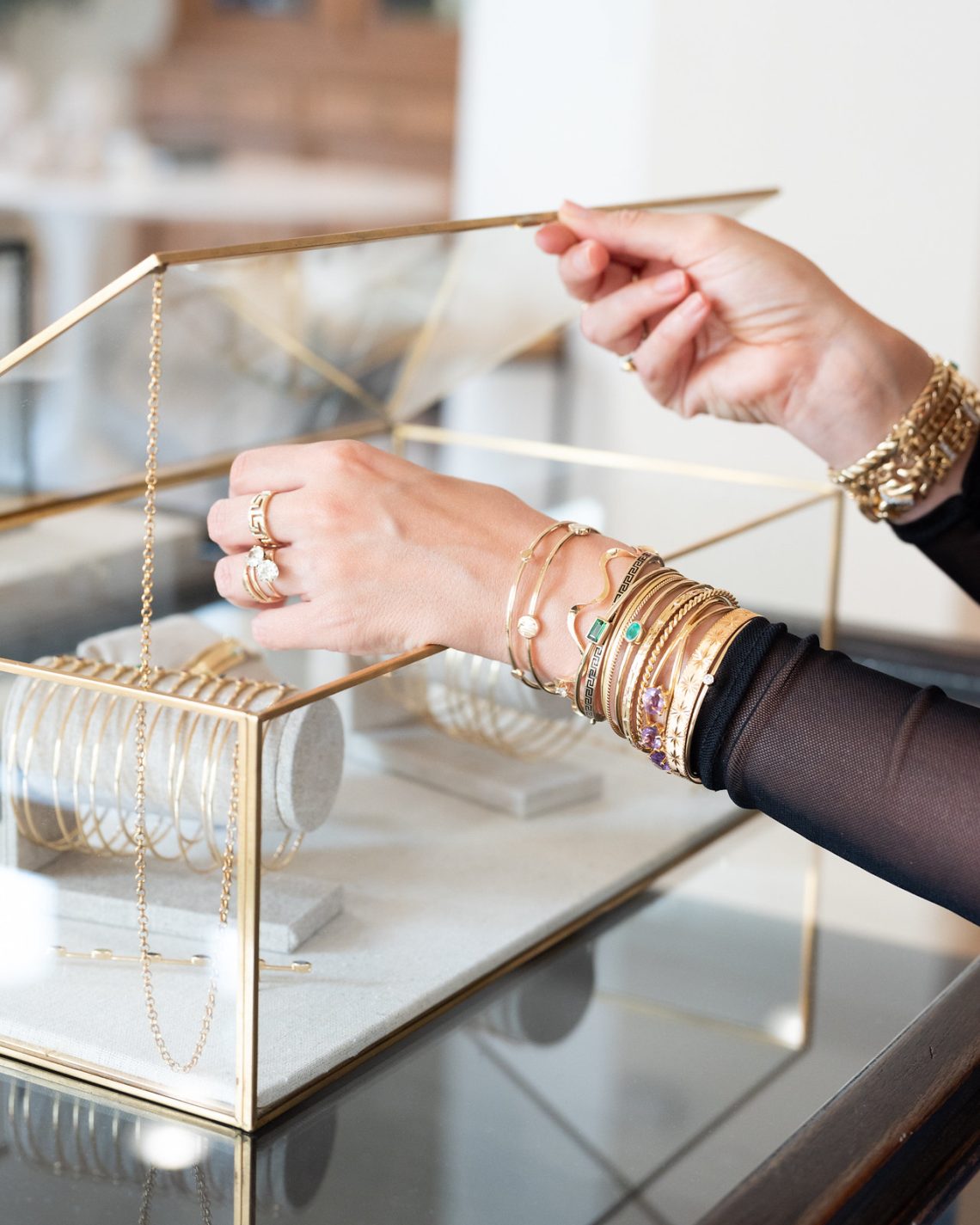 About two years ago I visited Yearly Co on my birthday to see these gorgeous golden bangles in person after obsessing over them on Instagram. Prior to that, bangles and bracelets didn’t interest me at all – I was more of a ring and necklace person, hardly ever wearing a bracelet. It was through these Jewelry Road Trip visits while creating content – stacking bracelets for a photo finally influenced me in real life to explore this jewelry category. I would say my first monumental bracelet purchase – a David Webb panther bracelet to commemorate my first son being born – was all it took for me to become bracelet obsessed.
