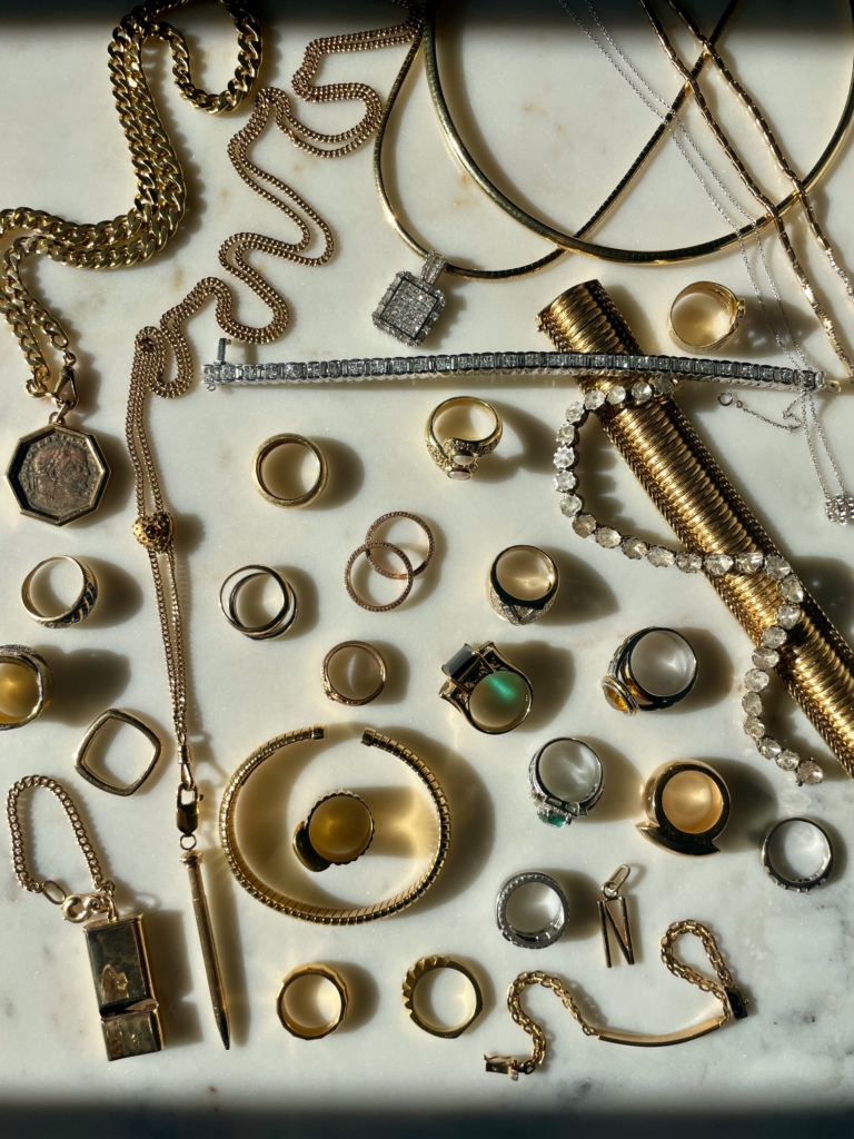 “I have been collecting since I was a kid. I actually still have one of my first rings in my collection, which now only fits my pinky, but I still wear it on occasion! Clearly, my mom loves jewelry and imparted that love onto me. I had a lot of exposure to jewelry from an early age so it’s always been something I have been drawn to. I would say that my collection has changed a lot over the years as my preferences have shifted over time, but I have always been obsessed with rings and drawn to statement pieces. I am also not particularly sentimental either, so I have always been (and continue to be) quite willing to let go of pieces that no longer suit me to make room for pieces that best suit me in my current stage of life. I think one of the things that I’ve learned about myself along the way is that I really like to have pieces that I wear on repeat, creating a signature look that I reach for every day.”