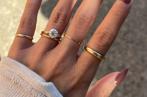 My engagement ring, my wedding band, my mother’s wedding band, a Victorian diamond double snake ring, and three signet rings—two on one pinky—one a retro Tiffany signet ring with an armored arm/hand, sword with “fortitude” in Latin and a diamond shield signet ring from The Moonstoned. The third is an Edwardian, Tiffany platinum and sapphire signet ring with the initial B carved into it. Sapphire is my birthstone, the initial is for my first name and my husband calls me “B”.
