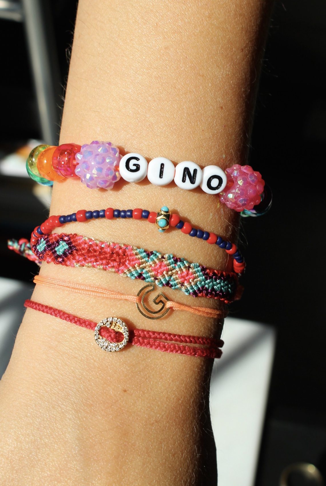 I decided then and there that these nylon and silk cord bracelets were my new obsession and wanted to add some more to my right-hand wrist stack. This felt very summery to me and perfect timing with my first beach vacation in over 5 years. Before going on this family vacation, I banned myself from buying any jewelry for an entire month. It was definitely hard to do and of course I failed because I ended up buying the second addition to my wrist stack during that month — the neon orange G bracelet from K Kane Jewelry. I discovered K Kane Jewelry after my friend Jenn of @bellflowerbay sent me a link to their website. She thought it was neat that a jewelry brand had her last name and we both agreed that it was actually a fun brand! I fell in love with their Chain Letter Neon bracelets. You can choose any letter (there’s also a few symbols) which is solid 14k gold and a cord color, for only $88. I love mine and again, so comfortable to wear, I haven’t taken it off and even wore it to the beach. I also bought one for a friend — they make great gifts!