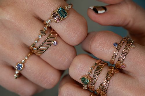 Lot 445: When I saw this ring it instantly made me happy! I love when jewelry can do that and I imagine it doing so with whomever buys it. The bright pink stone is a pink tourmaline, with matching pink tourmaline cabochons to accent the center stone. I love the detail of the inlaid mother of pearl — it is pink in color, so it really highlights the center stone and complements it well. Estimate: $600-800