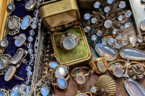 “I have been collecting jewelry since the age of 12. My first pieces were all gifts from my Grandparents and Parents. My collecting journey started with a fascination with rocks and minerals, which led to an interest in gemstones. In kindergarten we lived near Penn State University and their museum. I would stare in wonder at the gems in the glass cases. Now I am almost 41 so I have been collecting for quite a while! I still have the first pieces I was gifted- tiny pearl studs, an amethyst ring and a pearl tin-cup set.”